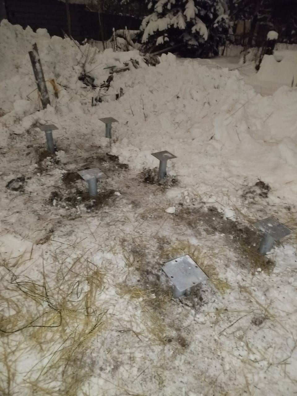 Работа началась с тщательной разметки участка. Для фиксации распределительного шкафа было предусмотрено использование 6 винтовых свай. Особенность январского монтажа заключалась в необходимости прохождения верхнего слоя промерзшей земли, что требует использования специализированного мощного оборудования. Мы применили технологию предварительного бурения лидерных лунок, которая позволяет заходить в грунт максимально ровно, не нарушая структуру почвы вокруг лопасти сваи.